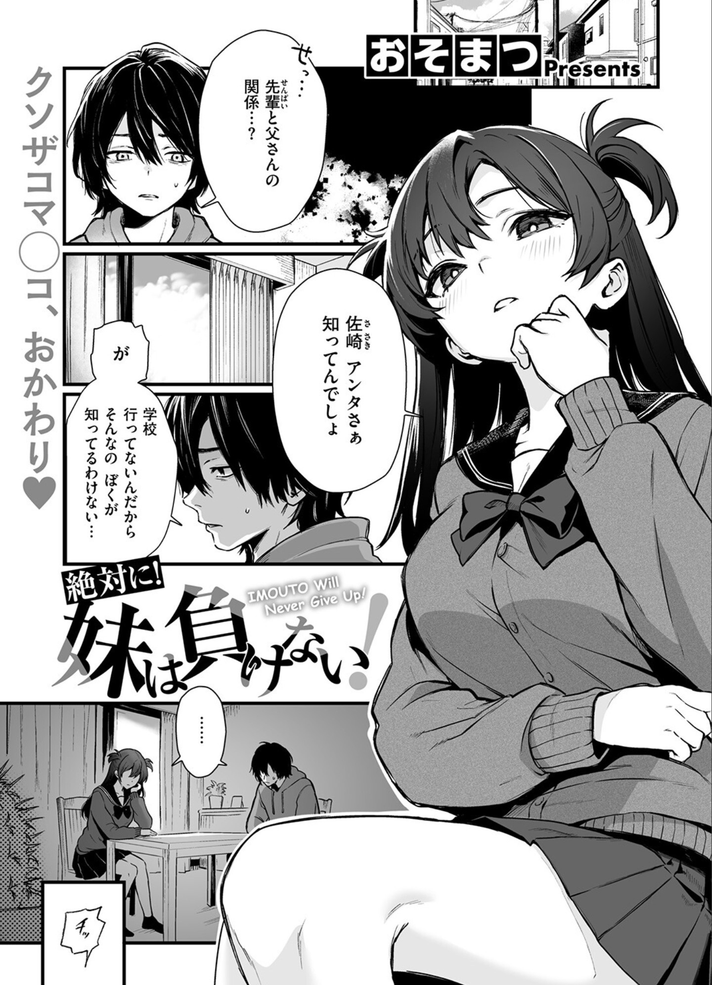 おそまつ先生が贈る衝撃的なシリーズ『お姉ちゃんはおじさんに屈しない!』の続編であり、妹・優花を主人公にした単話作品『絶対に! 妹は負けない!』は、前作の背徳的な状況から一転、壮絶な逆転劇とハードな陵辱を描き切った話題作です。学校では優等生、家庭では姉を溺愛する巨乳の可愛い妹・優花(ゆうか)と、教師の息子である同級生の関係を軸に、予測不能な展開と淫乱・ハード系のエロティシズムが炸裂します。
