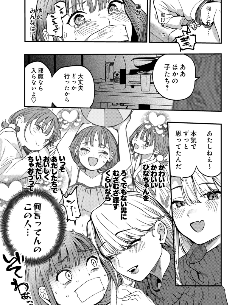 サークルの親睦を深めるための「鍋パ」が地獄の始まりです。酔い潰れてしまったひなが目を覚ますと、そこはいつもの楽しい部室ではありませんでした。信頼していた松山部長、そして憧れの奈津美先輩までもが、ひなを玩具として扱う共犯者となっていたのです。女子大生としての尊厳を奪われ、乱交の道具にされていく過程が、息つく暇もないテンポで描かれます。